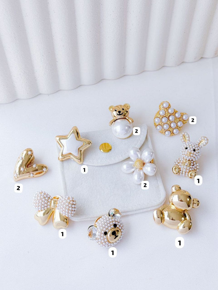 Escoge uno de nuestros prendedores hermosos y elegantes en baño de rodio dorado con mini perlitas, que podrás combinarlos con todos tus outfits por sus componentes clásicos.