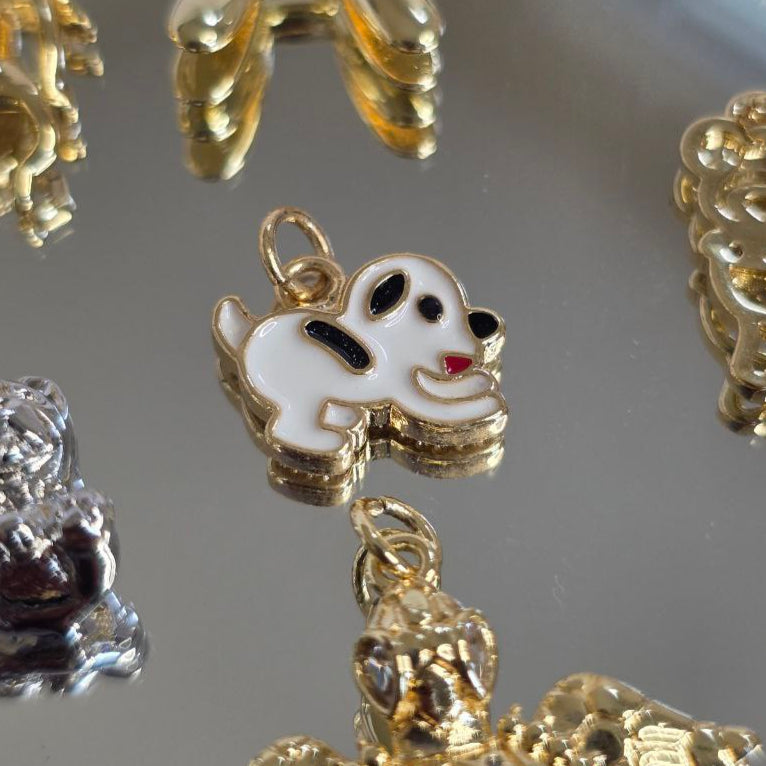 Dije perrito blanco en rodio dorado, el perfecto acompañante de tus cadenas.