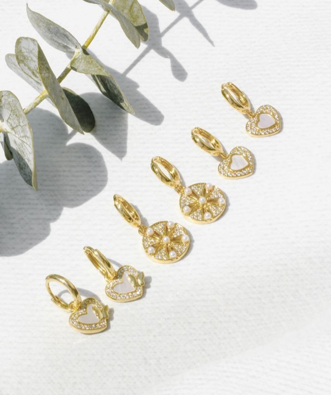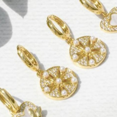 Dijes elegancia, mini perlas y brillantes en baño de rodio dorado, perfecto acompañante de tus cadenas.